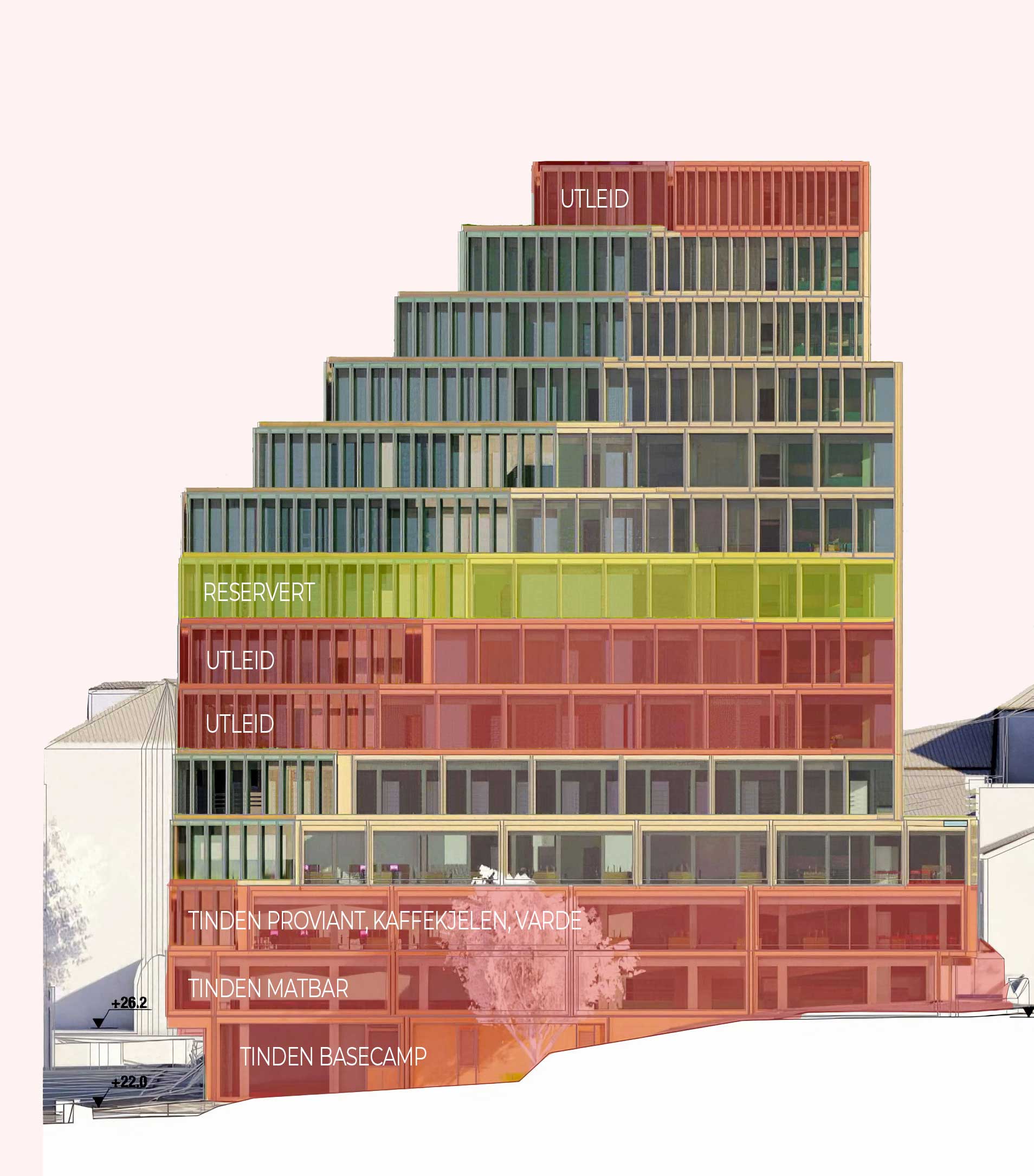 Med ledige etasjer tilpasset både små og store leietakere, er Tinden et naturlig samlingspunkt for bedrifter som ønsker å kombinere kvalitet, synlighet og nærhet til byens pulserende næringsliv. Her får du ikke bare kontorplass, men en del av et fellesskap der innovasjon, trivsel og vekst går hånd i hånd.